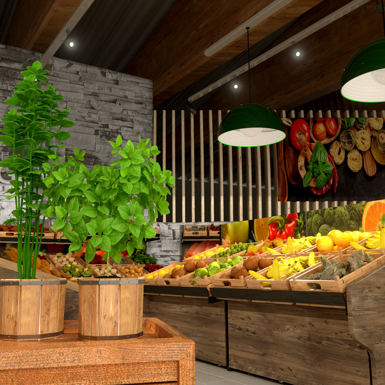 Vorrangig ist das Ziel einen vollständigen Supermarkt mit 3D Produkten auszustatten ohne Hilfe von reinen Texturprodukten. Im Laufe des Projektes entwickelten wir eineig Scatter- und Produktplazierungsassets, die uns die händische Platzierung von Produkten abnehmen sollen.