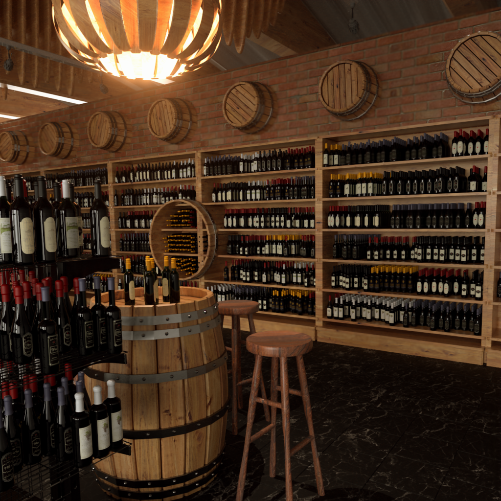Hier sind einige Making Of Screens zu sehen. Alle Produkte können per Asset direkt im Programm geladen werden. Vom eigenen Weinflaschentool bis zum Regal.