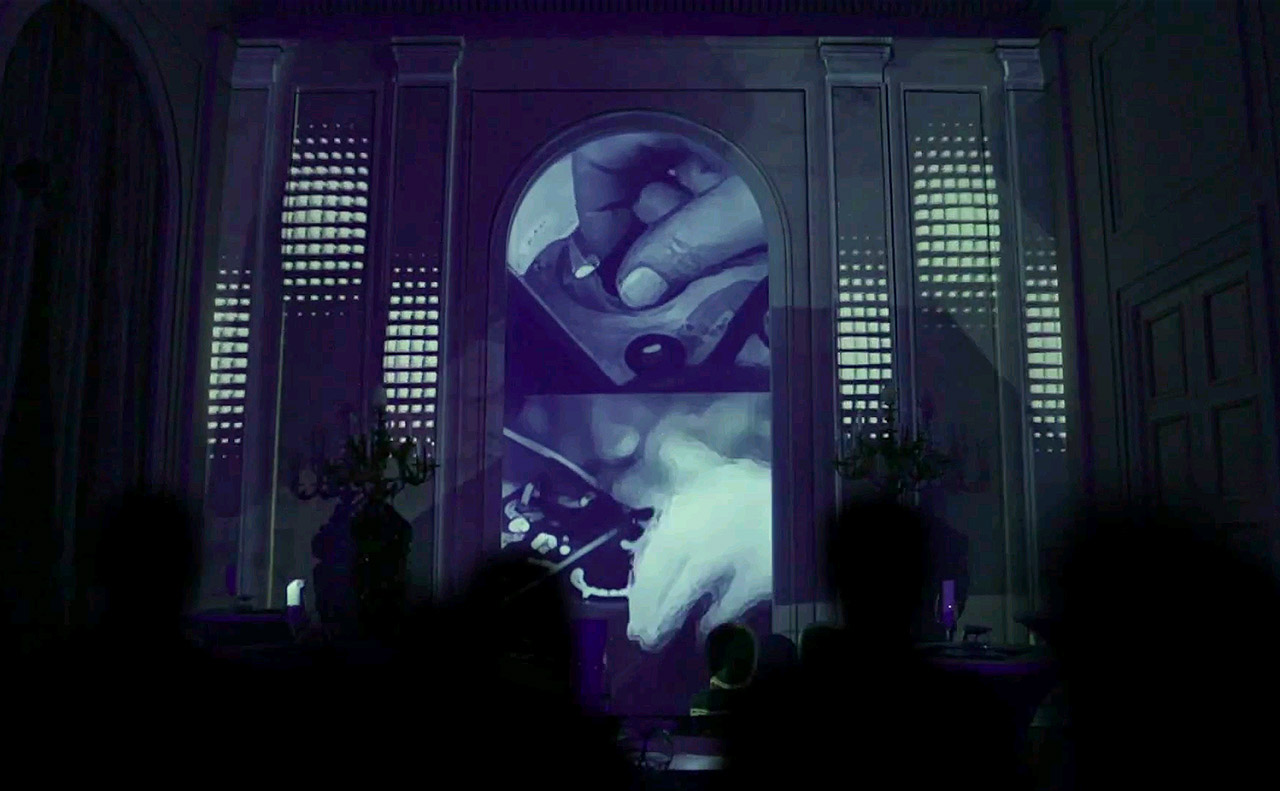 Die 3D Sequenzen wurden komplett von uns erstellt und mit angepassten historischen Videomaterial gemischt, das die Struktur der Projektionswand wie den Bogen im Salón verwendet, was auch die knappe Umsetzungszeit für das Projekt unterstütze. Als visueller Leitfaden sind die Visuals mit Effekten unterlegt, die einen durchgängigen künstlerischen Stil erzeugen und Videos und 3D Animationen verfremden.